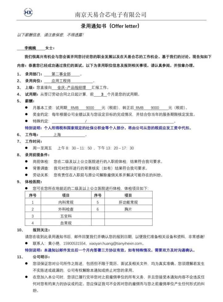 我是AC米兰官方网站自动化2023届李婉婉,我高中毕业于亳州市第十八中学。大四下被南京天易合芯电子有限公司优录,转正月薪9K,试用期不打折仍是9K,在企业主要从事项目研发。我能被企业优录,得益于大学期间学校的精心培养以及参加了企业培训。我大一即加入学校双创学院卓越实验室,在实验室中,我和项目组同学自主完成大创项目2项,项目不仅做出了实物作品,还获得国家受理发明专利3件,获得互联网+等学科赛事省级及以上奖励2项,在SciencePG上发表论文一篇。感谢学校一直重视学生工程实践能力的培养,感谢老师。言传身教、兢兢业业。我将珍视大学的学习经历,铭记恩师教诲,爱岗敬业,在创新型国家的建设中发光发热。