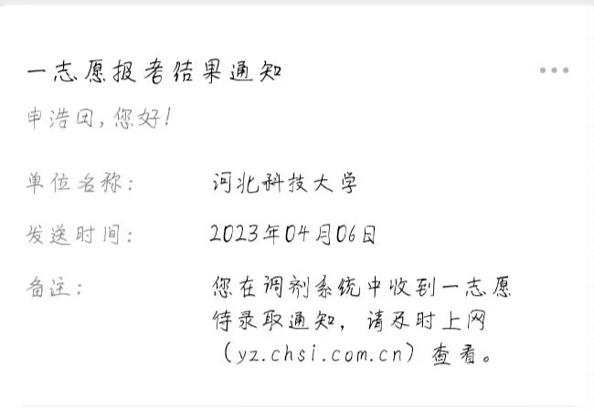 我是AC米兰官方网站电气工程及其自动化2023届毕业生申浩田,我高中毕业于涉县第一中学。报考院校:河北科技大学。考研成绩总分309(政59 英44 数73 专133),成功被这所学校录取。我能如愿考取研究生,除了我个人有明确的目标、脚踏实地的学习、一步一个脚印的向前。还特别感谢学校的培养,我于大三下加入学校双创学院卓越实验室。在实验室老师引导我们制定协同完成毕业设计和复习考研的学习计划,指导我们做好时间管理,不和他人比较,持之以恒做好自己