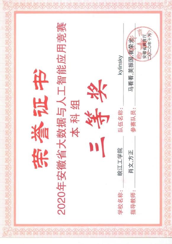 使君有政教,必本之学校。毫无疑问获得的各种奖项离不开学校、实验室、指导老师以及实验室成员的帮助。感谢实验室这个大家庭,感谢学习提供的良好环境,方老师的细心指导,伙伴的热情相助。