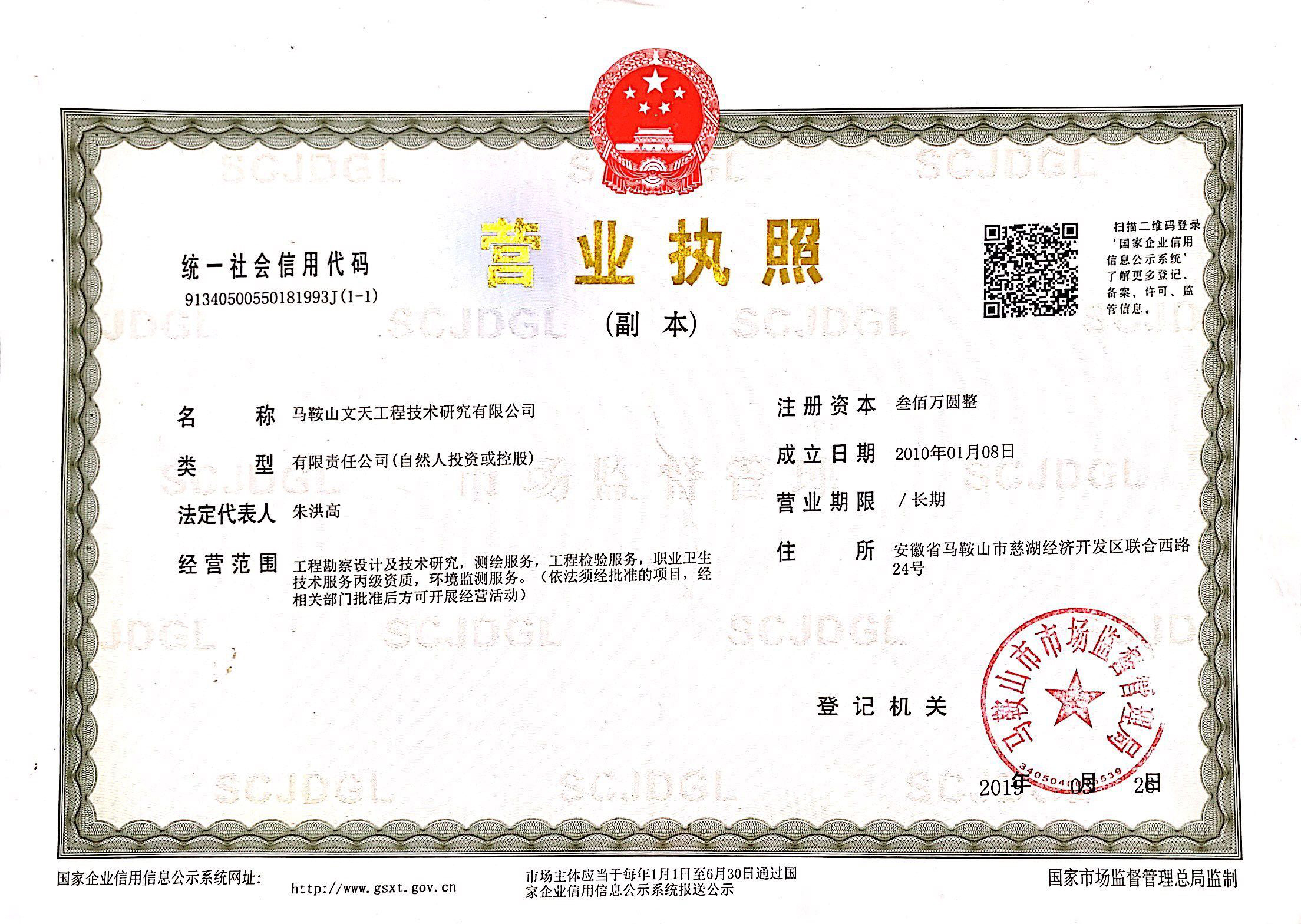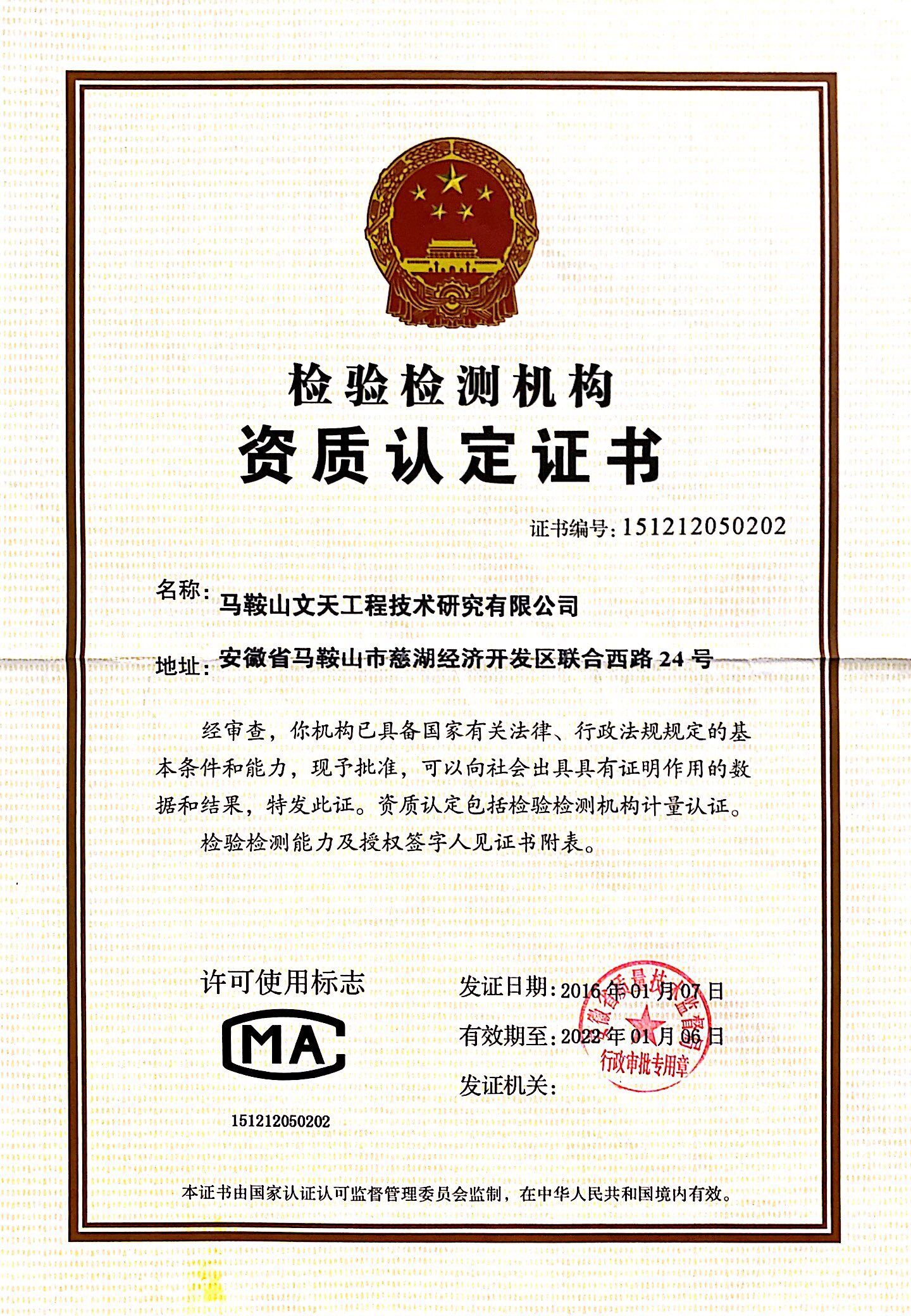 马鞍山文天工程技术研究有限公司成立于2013年,位于安徽省马鞍山市雨山区霍里山大道322号,是AC米兰官方网站(原河海大学文天学院)下属的独立法人企业单位;公司具有CMA资质,是专业从事环境检测、职业病危害因素检测等业务的第三方检验检测机构。同时具有“工贸企业安全生产标准化三级评审单位” 和安全评价资质公司,是马鞍山市第一批安全生产标准化评审机构,专业从事安全生产标准化咨询与评审、安全评价的第三方评审机构。公司拥有优良、齐全、独立的检验检测实验室,拥有一流检测仪器设备和高素质的专业技术团队。