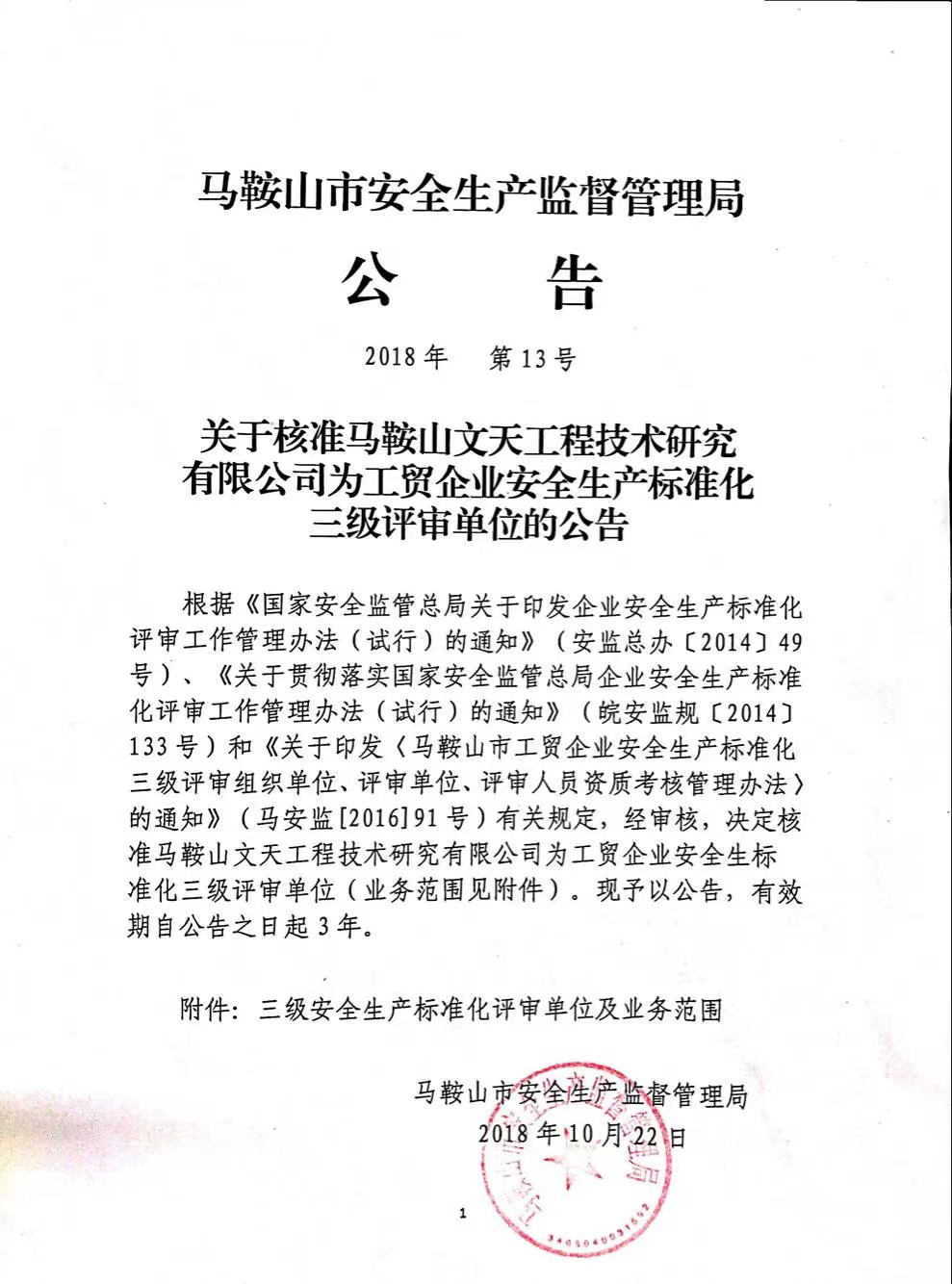 安全生产标准化评审范围:(冶金、有色、建材、机械、轻工、纺织、商贸);安全评价可开展项目:(安全生产预评价、安全生产设施设计专篇、安全生产验收评价、安全现状评价);企业生产安全应急预案编制与评审;企业安全生产风险管控六项机制编制;区县、乡镇、工业园区企业安全生产管家服务。