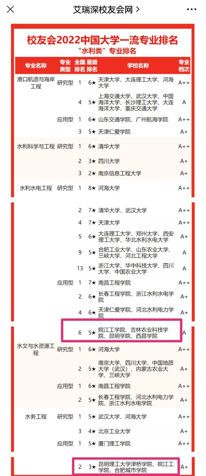 为了给2022年高考考生挑选“水利类”专业提供权威参考,近日,全国第三方大学评价机构艾瑞深校友会网撰写完成、科学出版社出版发行的《2022校友会中国大学排名—高考志愿填报指南》,最新发布校友会2022中国大学一流专业排名“水利类”专业排名。