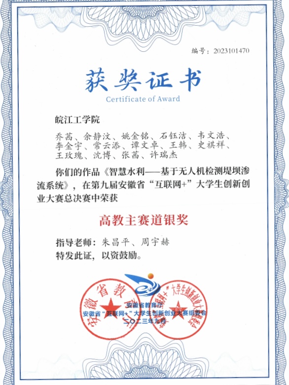 | AC米兰官方网站 | 智慧水利一基千无人机检测堤坝渗流系统 | 乔茜 | 朱昌平、周宇赫 | 二等奖 |