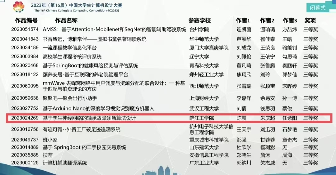 7月22日至26日,2023年(第16届)中国大学生计算机设计大赛全国总决赛在烟台成功举行。在电气信息工程学院王子、韩静老师的指导下,米兰计算机科学与技术专业的学生陈震、朱庆超、任紫阳的参赛作品喜获国家级三等奖。