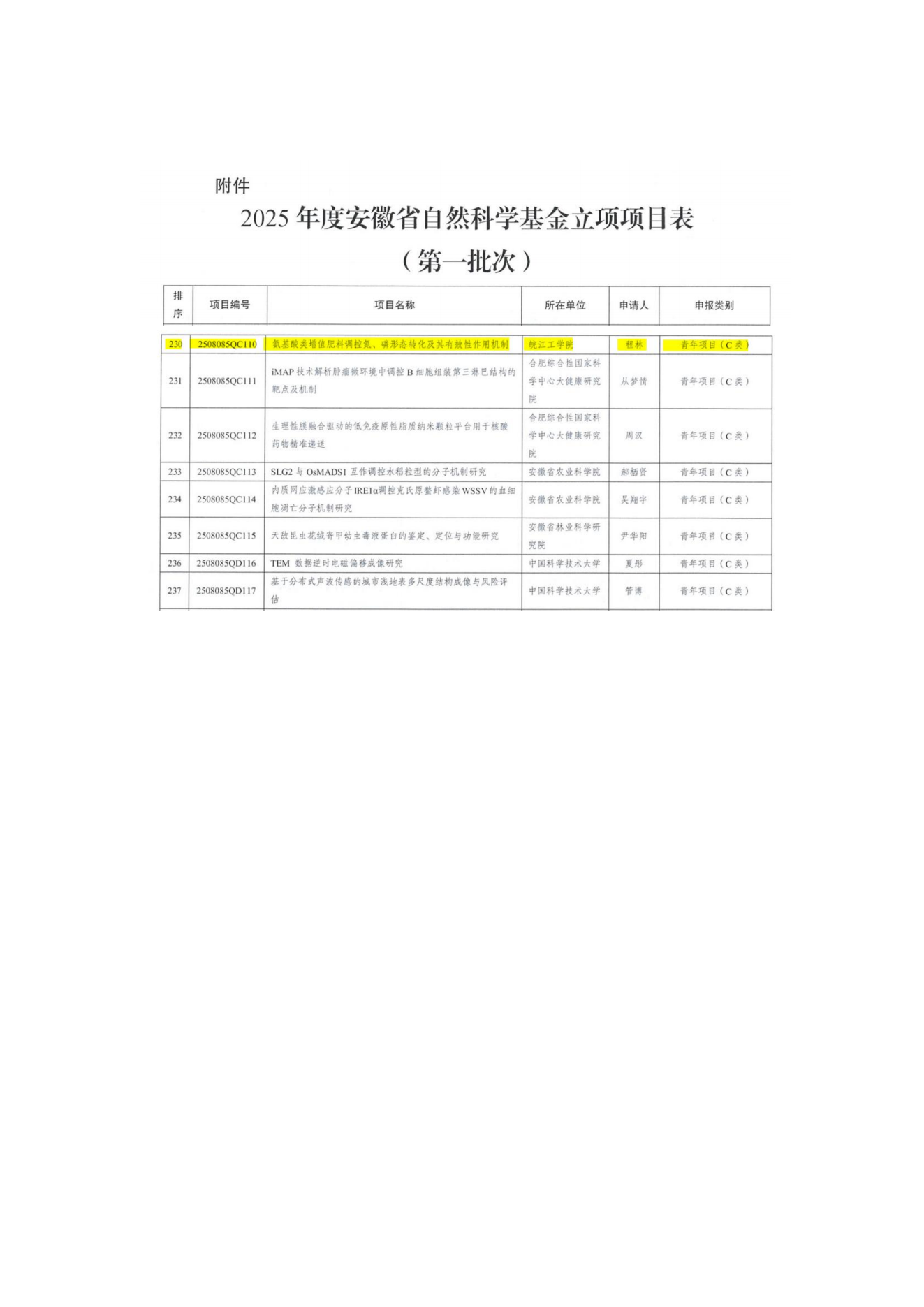 热烈祝贺米兰“氨基酸类增值肥料调控氮、磷形态转化及其有效性作用机制”项目获批2025年度安徽省自然科学基金青年项目(C类)资助