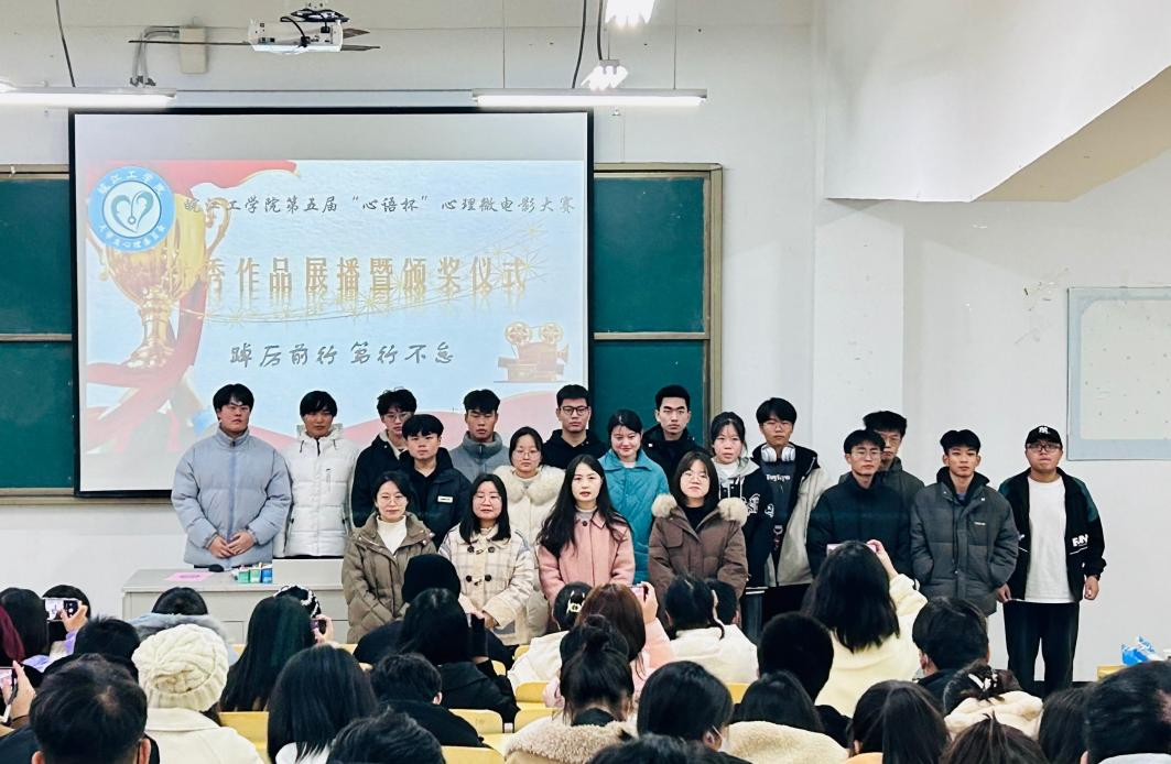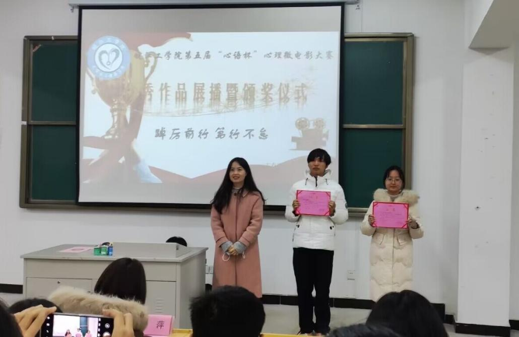 活动现场氛围热烈,由参会的领导嘉宾为获奖作品代表颁发荣誉证书并合影留念。获得此次大赛优秀奖的作品分别是:财经学院作品《发光吧》、管理学院作品《醒来》、艺术设计学院作品《不能再见的朋友》、水利工程学院作品《亲爱的小孩》、土木工程学院作品《替代》和机械学院作品《面对焦虑》;三等奖获奖作品分别是土木工程学院作品《胶水》、财经学院作品《焦虑》、电气信息工程学院作品《路》、管理学院作品《抬起头》和水利工程学院作品《林然的梦》;荣获二等奖的是财经学院作品《青春本炽,等你开启》和水利工程学院作品《累赘》;最终财经学院参赛作品《成为》荣获一等奖。观众们为获奖队伍送上了最热烈的掌声和最诚挚的祝贺。活动现场还对部分获奖代表作品进行了展播,这些作品题材新颖,内容丰富,对当代大学生心理健康教育具有重要意义。