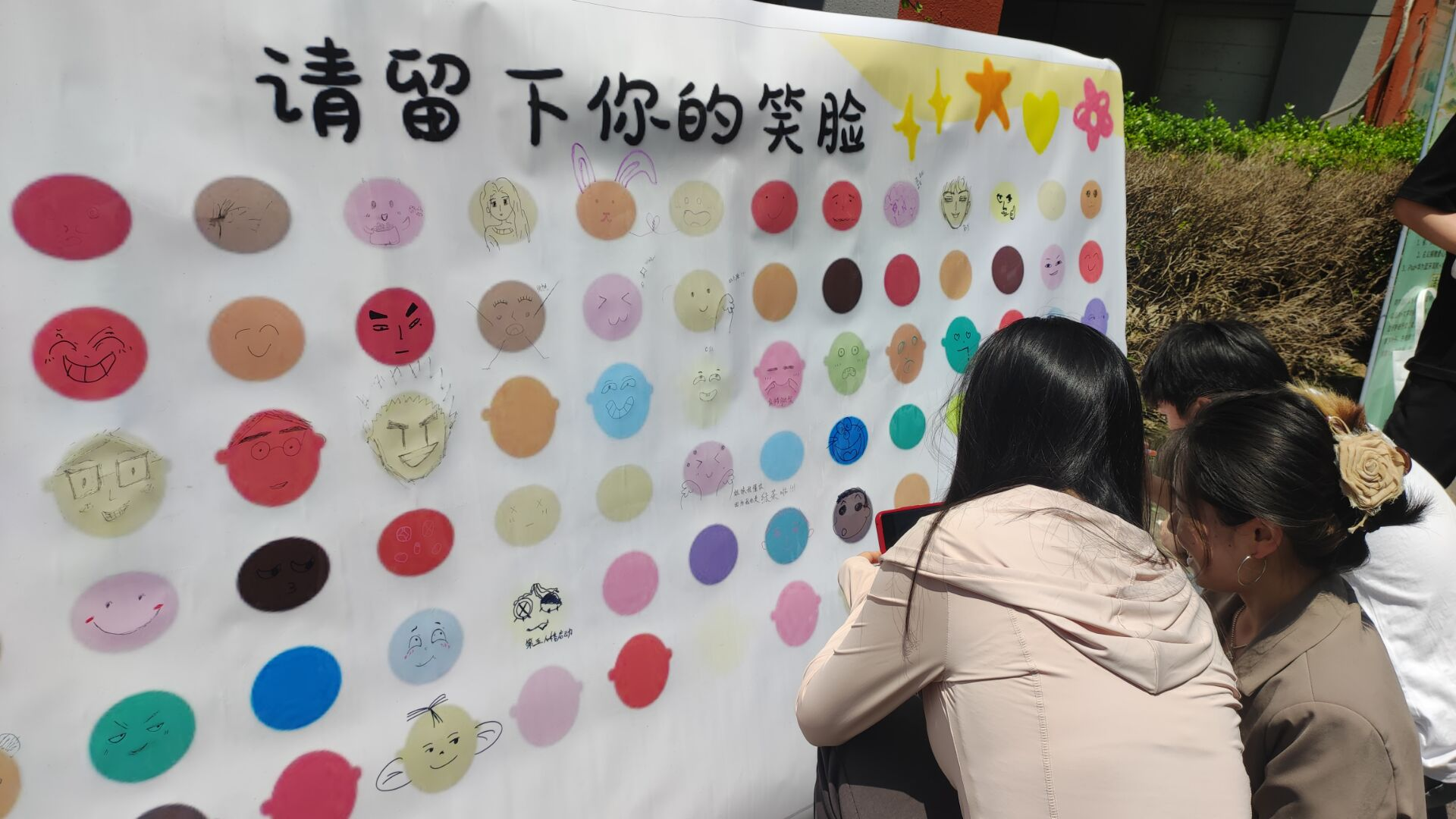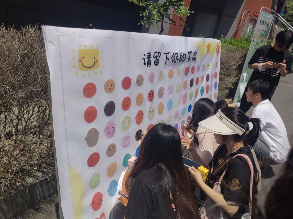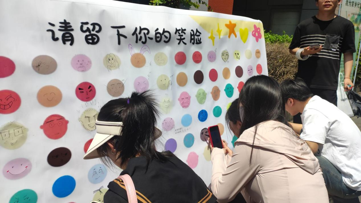 活动现场,同学们纷纷驻足,拿起画笔在展板上画出了一个个可爱的笑脸。在同学们的心中,对于微笑的诠释都不一样,他们用绘画的方式表达出他们心中的微笑。展板上画满了笑脸,同学们的脸上也都洋溢着笑容。