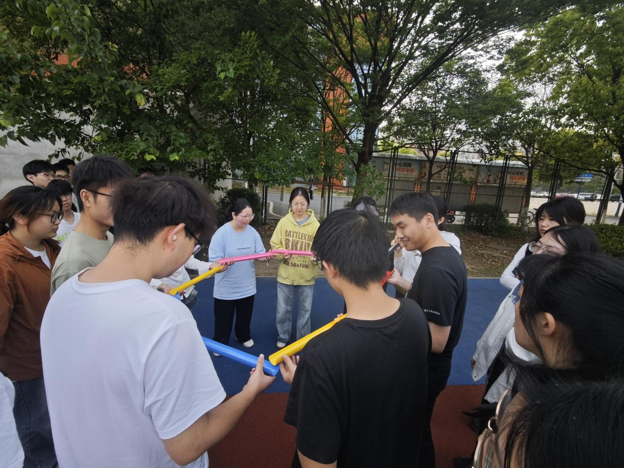 活动伊始,于浚泉老师以“石头鸡猴子佛”的创意手势游戏拉开序幕,参与者快速投入轻松欢快的氛围中。随后,通过“向左向右”等环节,同学们在肢体互动和语言交流中不断增进彼此了解。活动核心阶段,五个小组团队依次体验了“急速三子棋”、“珠行万里”、“合力建塔”等活动,体悟集体的温暖和团结的力量。活动尾声,“互助保健操”以舒展的肢体动作和轻松的按摩活动,为活动画上温暖句点。