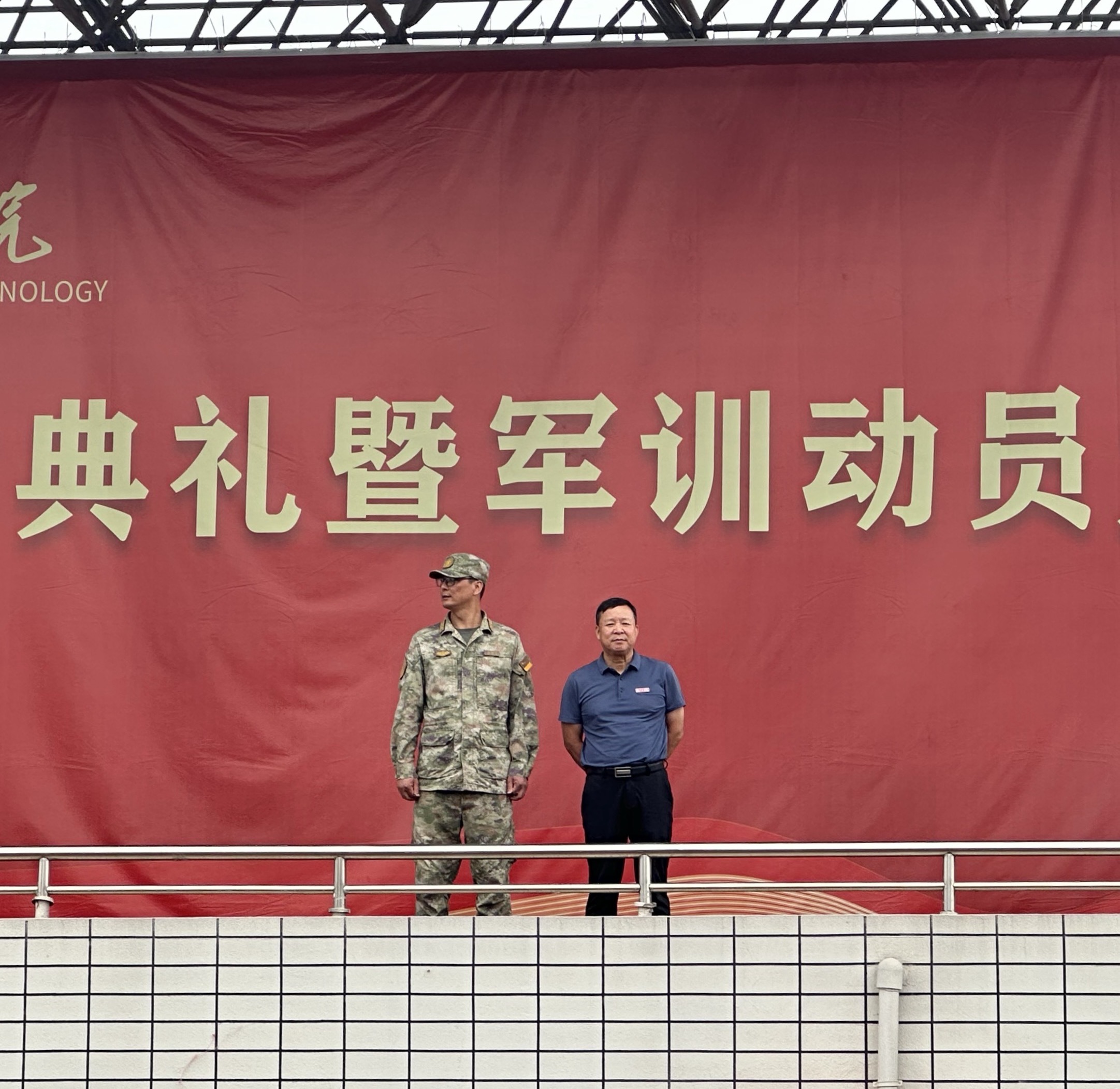 在军训动员大会现场,校长与承训教官共同登上主席台。面对队列整齐的军训方阵,校长发表热情讲话,既对教官们的辛勤付出表达衷心感谢,也鼓励新生在军训中锤炼意志、培育团队精神。随后,校长对军训方阵进行检阅,新生们以饱满的精神状态和整齐的步伐接受检阅,充分展现出良好风貌。