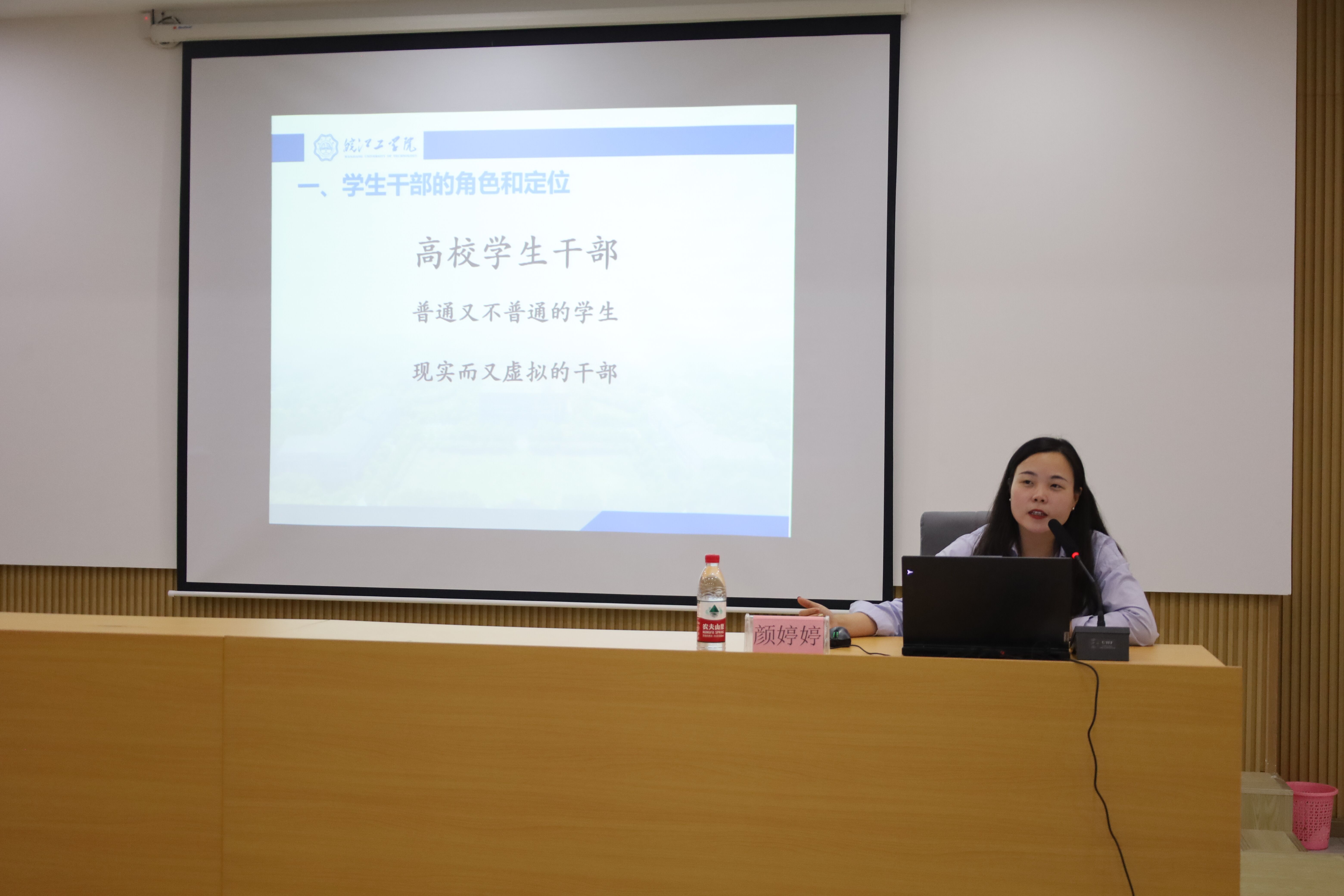 会议结束,机械工程学院党总支副书记颜婷婷从“学生干部的角色定位”、“学生干部应当具备的综合素质”、“如何提高学生干部的综合素质”及“如果做好学生干部”四个方面,给“楼管会”全体学生干部做了“学生干部能力养成”专题培训。
