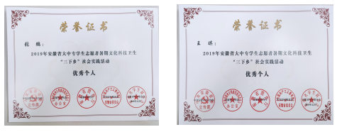米兰在2019年安徽省大中专学生志愿者 暑期文化科技卫生“三下乡”社会实践活动中荣获佳绩