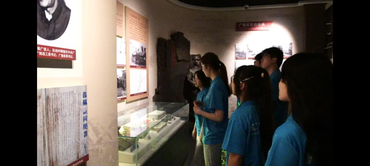 6月29日,实践团首站来到广德烈士陵园与广德市博物馆。在烈士陵园内,成员们瞻仰烈士纪念碑,聆听革命先辈为民族解放浴血奋战的故事,在庄严肃穆中体悟“一寸山河一寸血”的厚重;走进博物馆,从馆藏文物与历史文献中,系统了解广德地区的革命历程与地域文化,为后续红色文化宣传积累素材。