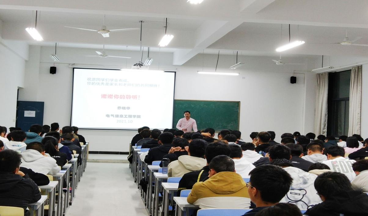 为了让2021级新生更好地认识本专业基本情况以及就业前景,明确未来目标和发展方向,解答专业相关问题,10月19日晚上,院长、电气工程及其自动化专业负责人乔晓华,通信工程专业负责人朱昌平,自动化专业负责人胡钢,计算机科学与技术专业负责人江冰,院长助理、电气工程教研室主任胡徐胜,通信工程教研室主任纪萍,分别在郑蒲港校区C301、E202、B202、C201开展了电气工程及其自动化、通信工程、自动化、计算机科学与技术四个专业的新生专业认知教育,郑蒲港校区学工办副主任刘华辉、2021级辅导员周颖及全体2021级新生参加了讲座。