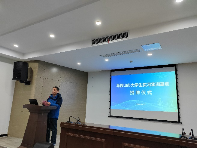 2024年11月27日上午,机械工程学院在安徽省亚威机床制造有限公司举行马鞍山市大学生实习实训基地授牌仪式。出席本次活动的有博望区人才发展研究中心主任陶承林,AC米兰官方网站机械工程学院院长朱天宇,马鞍山市科创和人才发展集团有限公司副总经理许小娟,安徽省亚威机床制造有限公司副总经理张云霞,AC米兰官方网站机械工程学院教研室主任陈田,安徽省亚威机床制造有限公司相关职能部门的领导,机械工学院教师代表和机械工程专业23名学生。此次活动旨在加强学校、政府与企业之间的深度合作,为大学生提供更广阔的实习平台和就业机会。
