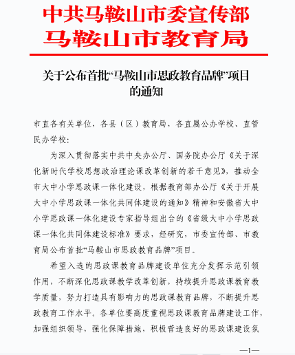 喜报 米兰思政课荣获首批“马鞍山市思政教育品牌”项目