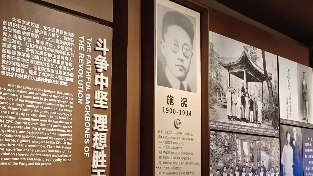 成员们经过红领巾广场,来到了烈士纪念碑。成员们在碑前行鞠躬礼,集体默哀。热心的游客向成员们介绍道,该碑高42.3米,寓意着1949年4月23日南京城获得解放。整个纪念碑由碑额,碑身,碑座三个部分组成。碑额形如红旗和火炬,碑身正面为邓小平题写的雨花台烈士纪念碑几个大字,北面为当代书法家吴忠奇先生书写的碑文。表达感谢后,实践成员们来到了烈士纪念馆。在纪念馆成员们怀着崇敬的心情听取了革命烈士的先进事迹,并观看了馆内陈列的烈士遗物,珍贵图片和文献资料,心灵经受着巨大的震撼。这些伟大的烈士一心为国家和民族的前途鞠躬尽瘁。照片上的他们虽然稚嫩,但仍然眼神坚毅,他们的样子深深地烙在了成员们的心中。