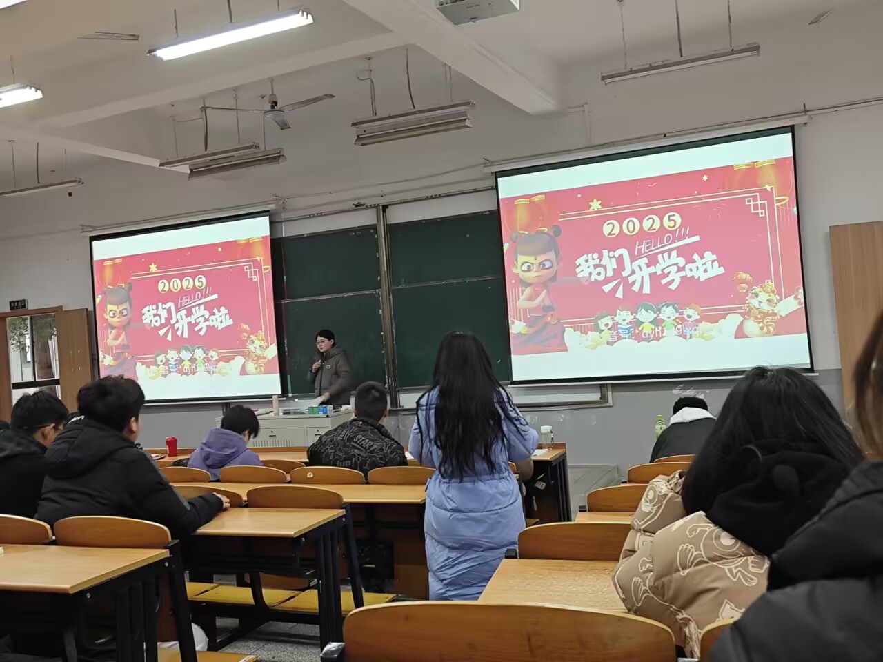 班主任陈梦如以“清零再出发”为主题,系统梳理上学期班级成绩数据。她通过图表对比指出,班级成绩较前一学期有所提升,但部分同学仍存在挂科问题。陈老师强调,成绩单是学习状态的‘体检报告’,新学期需针对薄弱环节精准发力。针对同学们提出的“时间碎片化”“学科难度大”等共性问题,陈老师建议学生要提升专注力,组建学习小组共享资源,并定期开展经验交流。