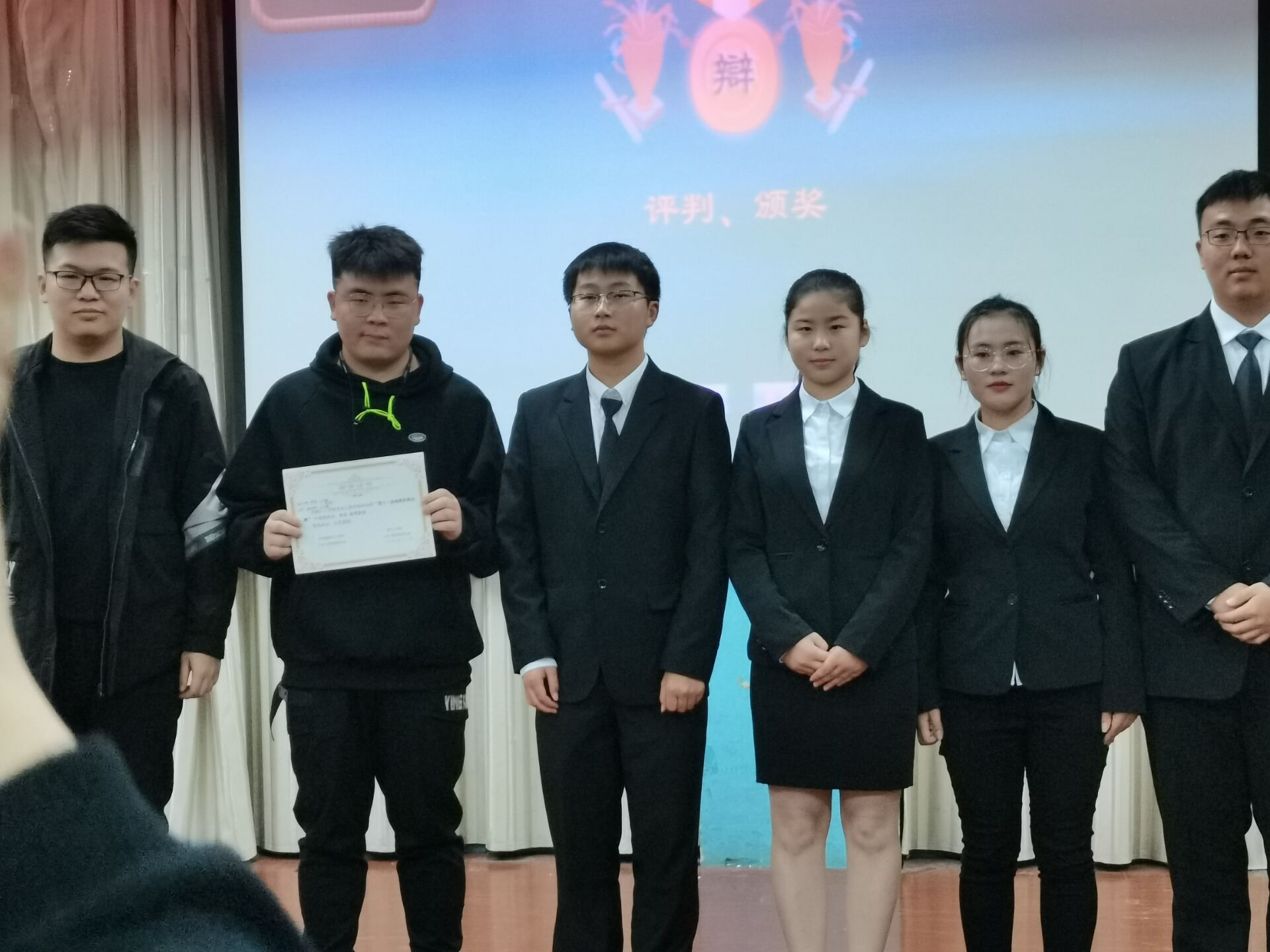 辩论比赛一开始,双方辩手便以别具一格,诙谐幽默的方式开始自我介绍,取得了观众热切的回应。在接下来的对战环节中:一辩开篇立论、沉着冷静;二辩灵活机智、脉络清晰,自由辩论过程中双方辩友争分夺秒、唇枪舌剑,将气氛推向高潮;四辩总结陈词、精辟到位,结束本次比赛。之后评委老师作出点评,并提出意见和要求。最终来自安全工程的“普凌宇航队”脱颖而出获得了第一名,测绘工程的“箭射美利坚队”获得了第二名 ,交通工程的“小朋友有大智慧队”获得了第三名。