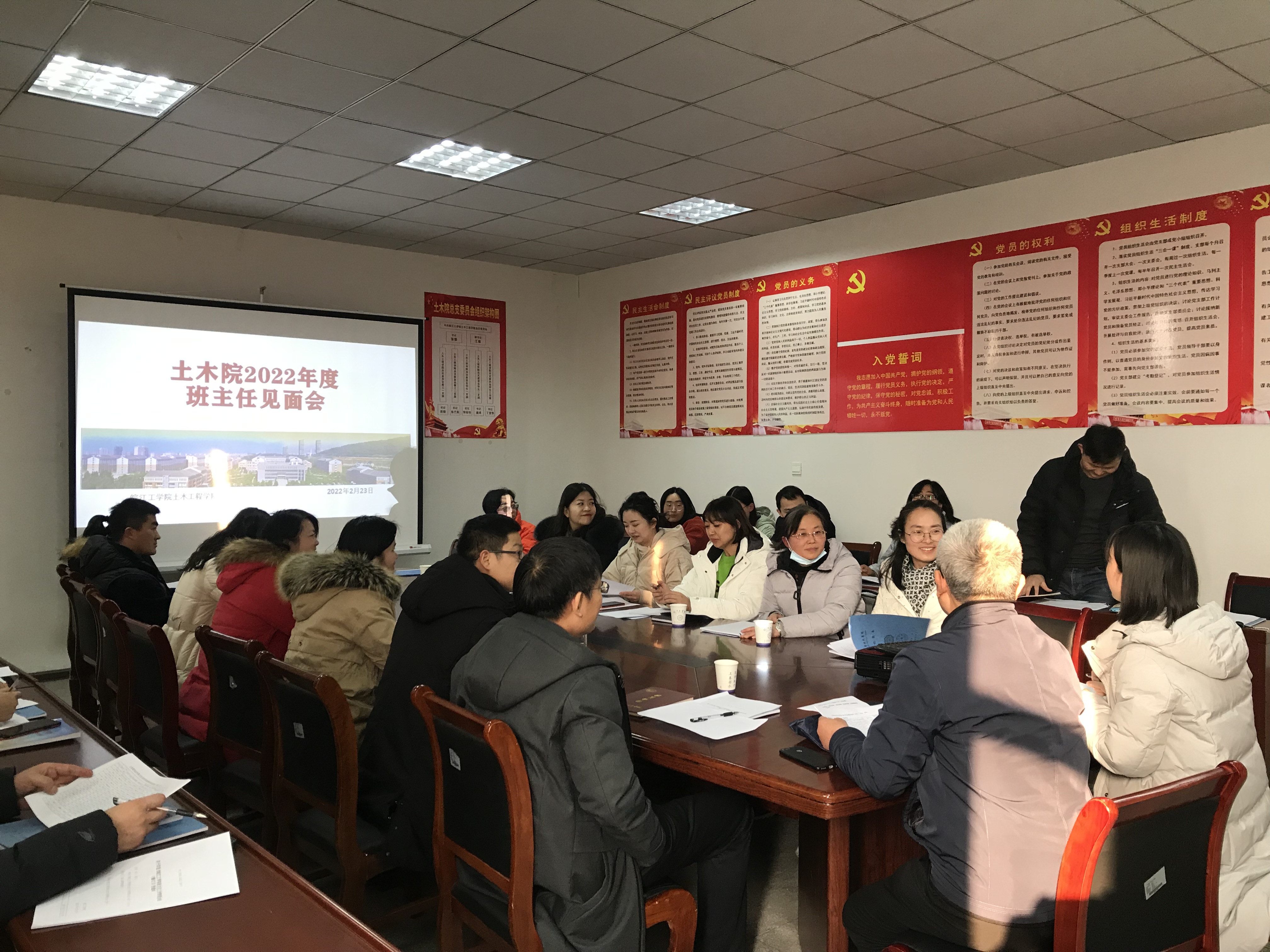 2月23日下午,土木工程学院在C507召开了2022年班主任首次见面会。学院院长陈礼和、院党总支副书记王瑜、院长助理张俊、学工办副主任程志鹏、党政办负责人鲍力丽及本院辅导员们与新任班主任们参加了本次见面会。会议由院长陈礼和、院党总支副书记王瑜主持。