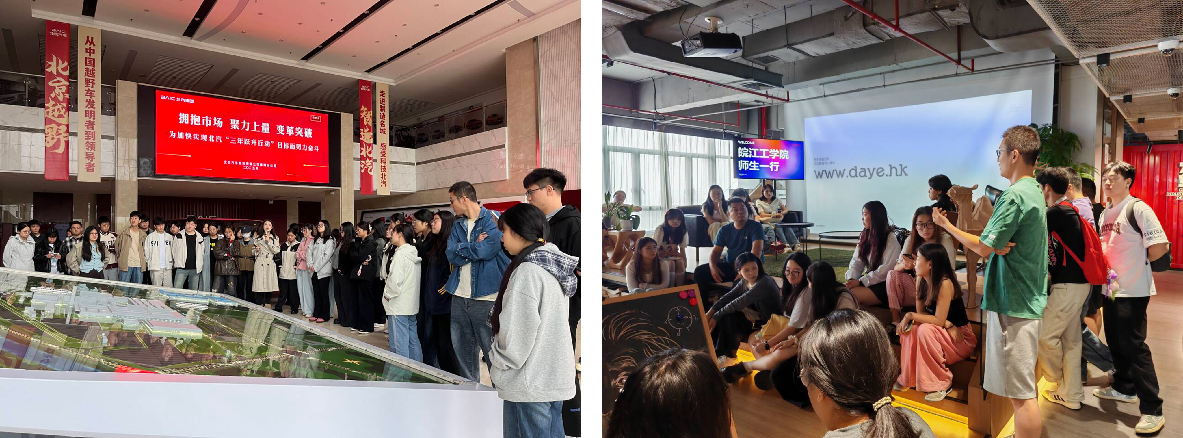 本次考察打破传统课堂边界,将教学现场直接置于产业一线。在广州,师生走进广州大业设计公司,实地了解产品设计从需求分析、概念草图到建模落地的完整流程;公司产品经理围绕“产品设计专业就业方向”和“市场主流设计软件的应用趋势”等学生高度关注的问题,进行了系统讲解与互动答疑,帮助学生明确职业路径,掌握企业所需的工具技能,真正实现“学有所向、学有所用”。此外,师生还深入北汽制造工厂与中车智轨生产基地,零距离观摩汽车智造的自动化产线与轨道交通产品的系统化设计流程。在醴陵陶瓷博物馆及配套工厂,学生完整跟踪了从原料到成品的陶瓷工艺全流程,真正理解“设计图纸”与“生产实现”之间的关键衔接。