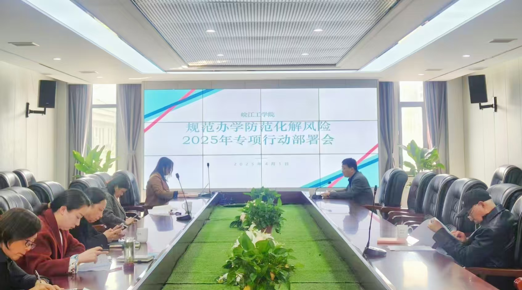 院务部部长江春明传达了安徽省教育厅关于2025年民办学校规范办学防范化解风险专项行动的精神和文件要求,院务部综合科科长王玉珏讲解了2025年专项行动自查自改计划和注意事项。随后,党务部、教务部、学工部、财务部等部门负责人展开讨论,提出建议。