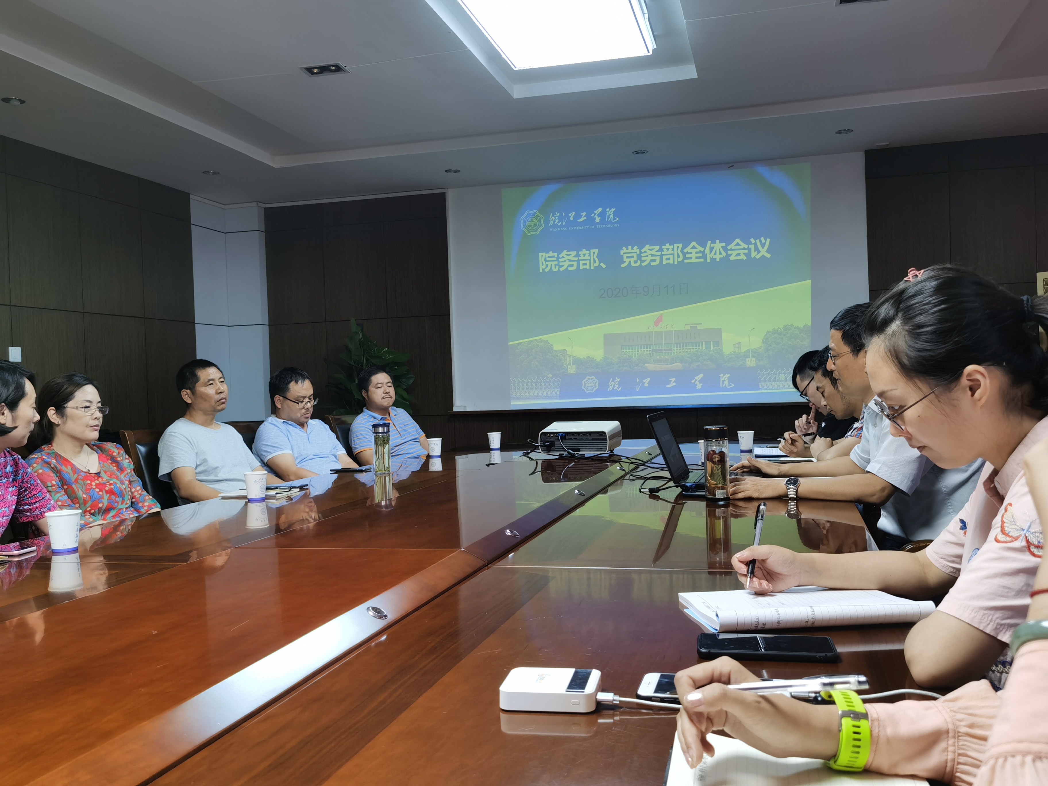 9月11日下午,院务部、党务部全体会议在行政楼404会议室召开。院务部部长、党务部部长伍旭坤主持会议。
