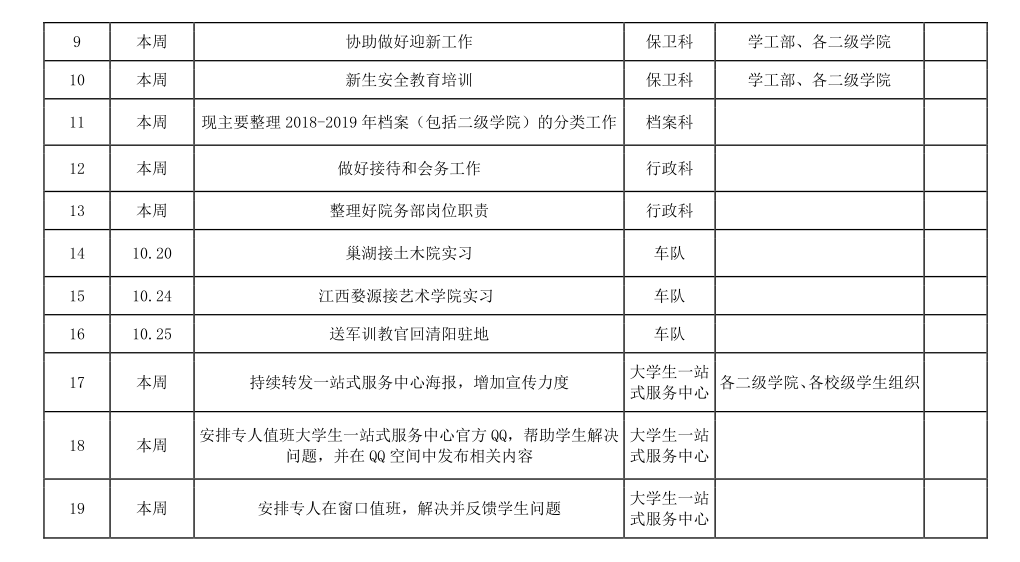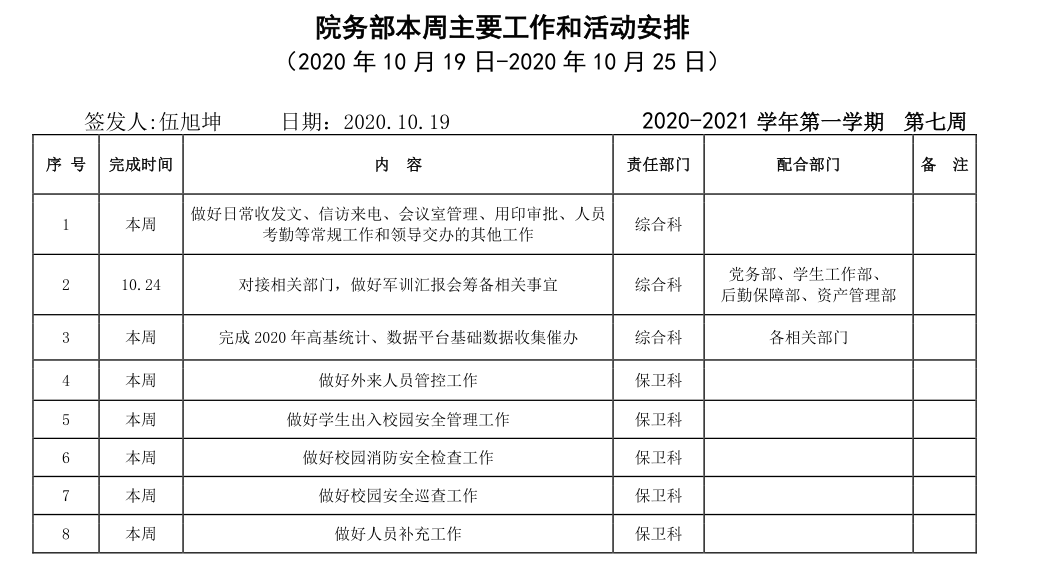 AC米兰官方网站院务部第八周工作安排