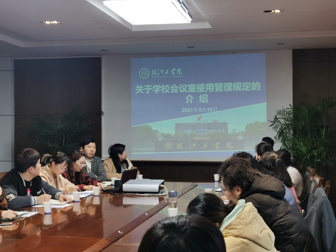 会上宗晓雪部长为全体人员解读了学校工资构成、发放等相关制度;院务部综合科科长戴雪婷从会议室概况、会议室日常管理、申请程序、注意事项、图书馆报告厅使用管理介绍等五方面具体介绍了会议室使用管理规定;院务部综合科王筱晗讲解了最新公文处理流程、公文中常见问题和公文写作的格式、注意事项等。