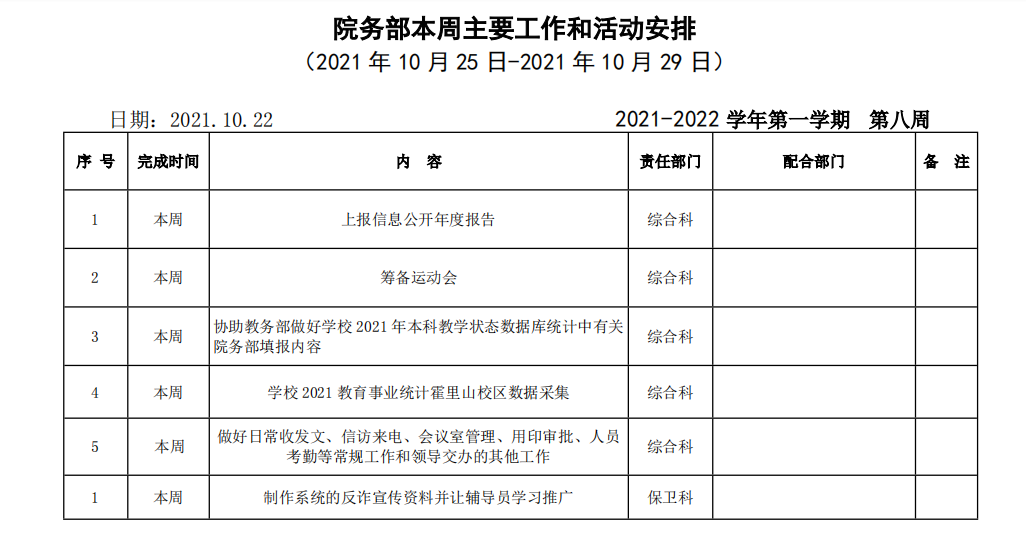AC米兰官方网站院务部第八周工作安排