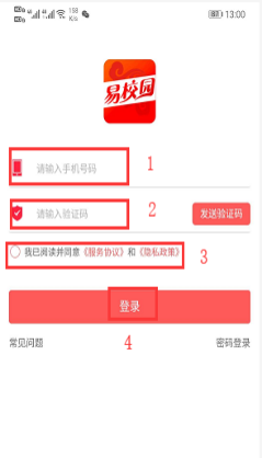 2、首次登陆易校园APP,需输入“手机号”;填写“验证码”;勾选“协议”;选择”登录”见图二。(注:部分用户登录界面会出现“邀请码”,不要填写。)点击“登录”后,弹出“定位权限”,选择“始终允许”见图三,再搜索框内输入“AC米兰官方网站”或直接“点击AC米兰官方网站”,见图四。根据图五界面选择相对应身份后,见图六。