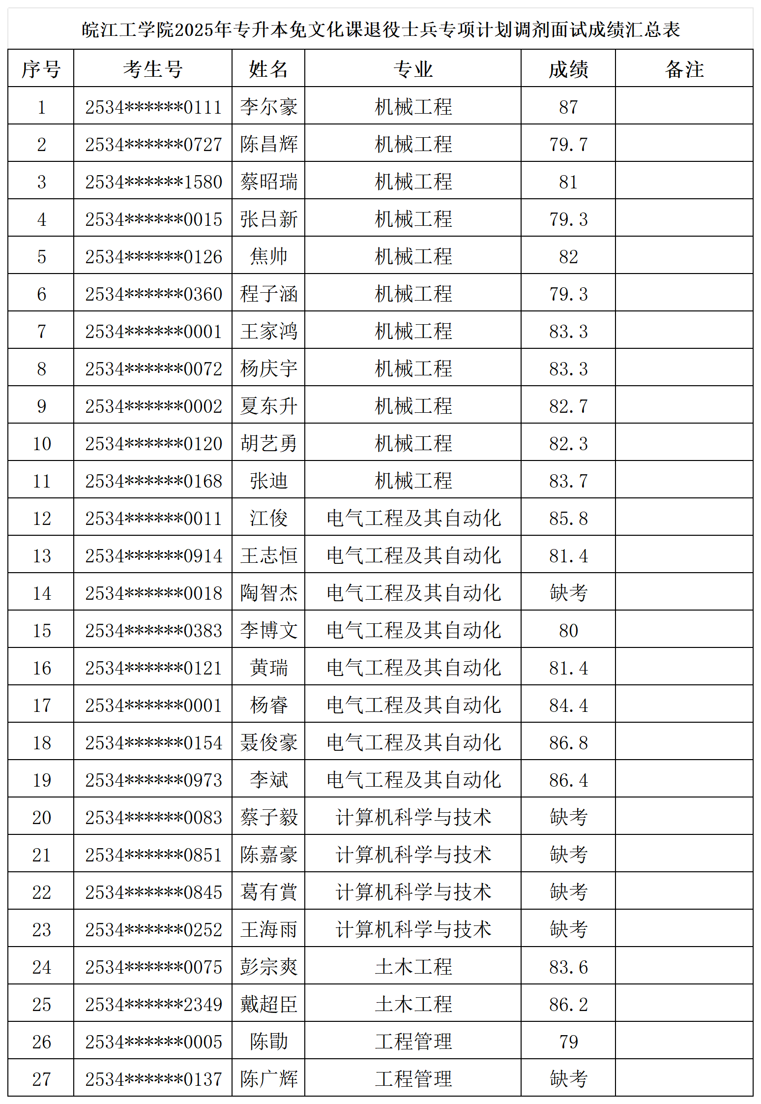 AC米兰官方网站2025年普通高校专升本免文化课退役士兵专项计划调剂面试成绩公示