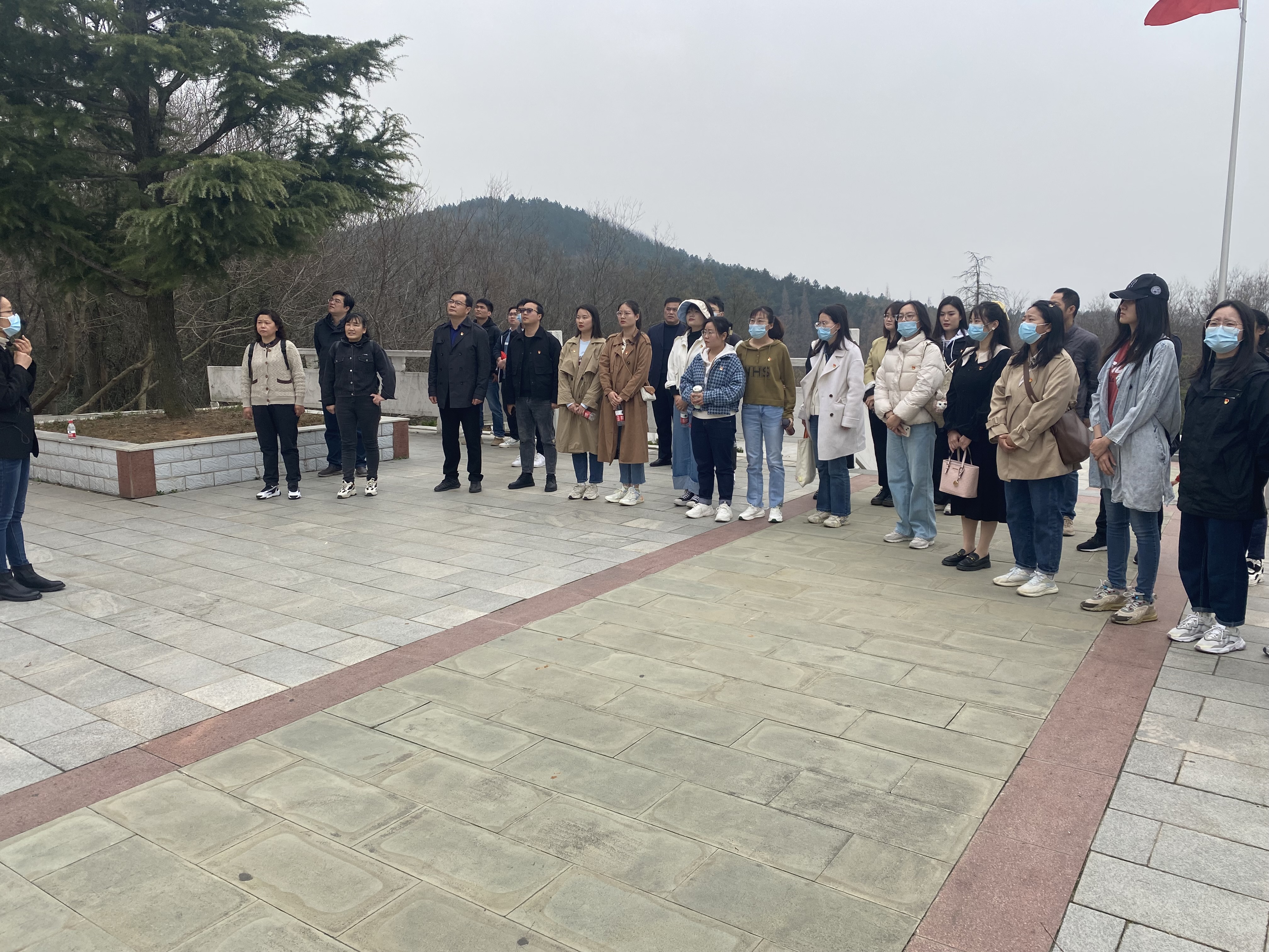 在横山景区讲解员的讲解下,全体党员同志们了解了横山地区小丹阳战斗、博望伏击战的抗敌历史,回顾了横山地区军民多次粉碎日寇扫荡的英勇场景,重现了革命先辈用鲜血和生命谱写的壮烈篇章。在校区管委会主任汪斌同志的主持下,现场党员及教职工面对高高矗立的横山抗日英雄纪念碑,列队肃立。在静默中追思难忘的烽火岁月,缅怀英勇的革命先烈,也提醒自己珍惜当下来之不易的和平生活。