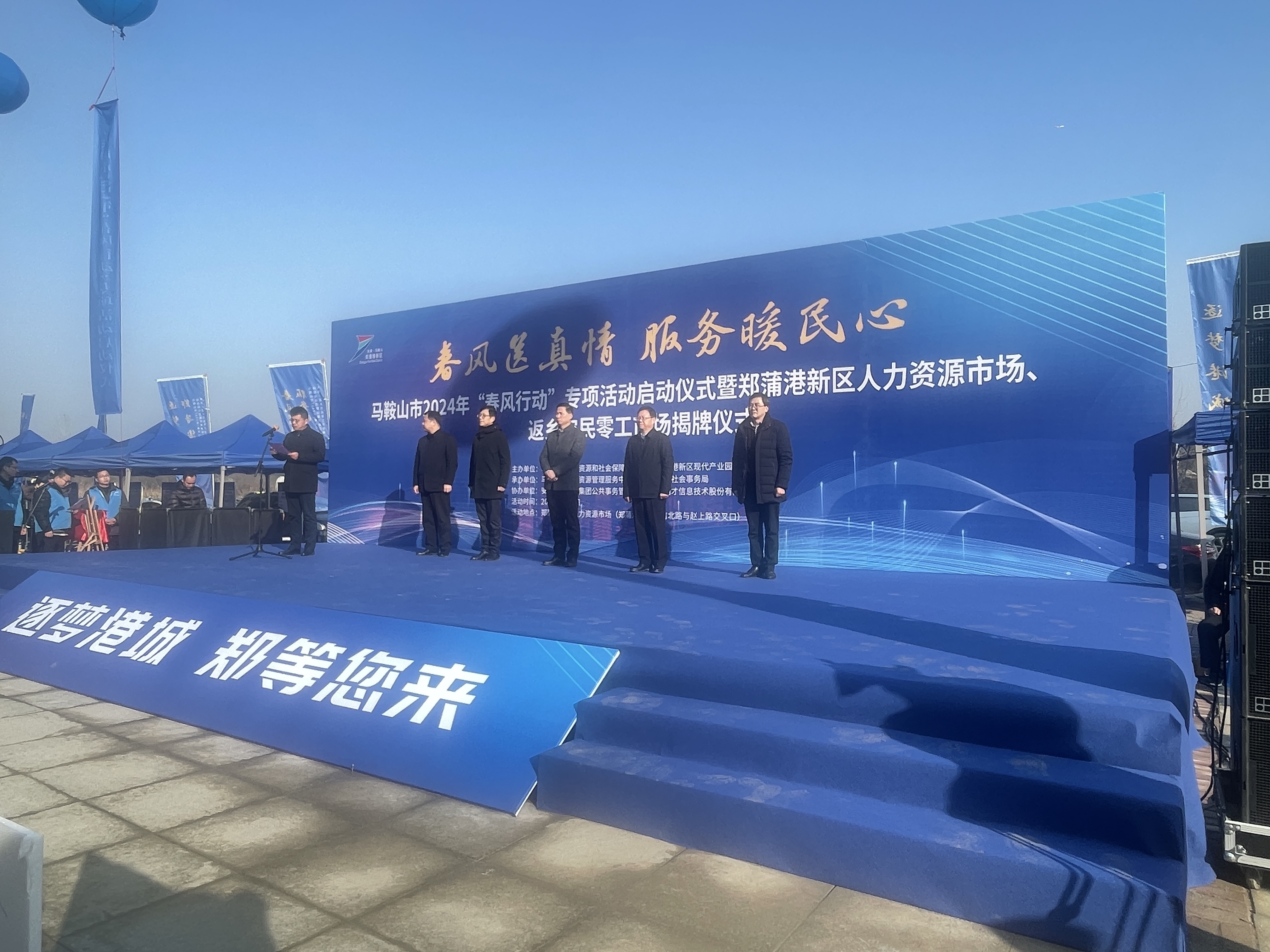 为实现更高质量就业,助力企业稳岗留工,促进企业高质量发展,2024年1月5日上午,马鞍山市2024年“春风行动”专项活动启动仪式暨郑蒲港新区人力资源市场、返乡农民零工市场揭牌仪式在郑蒲港新区人力资源广场(置信北路与赵上路交叉口镇淮花园三期东北角)举行,郑蒲港校区组织2022级人力资源专业学生参与活动。