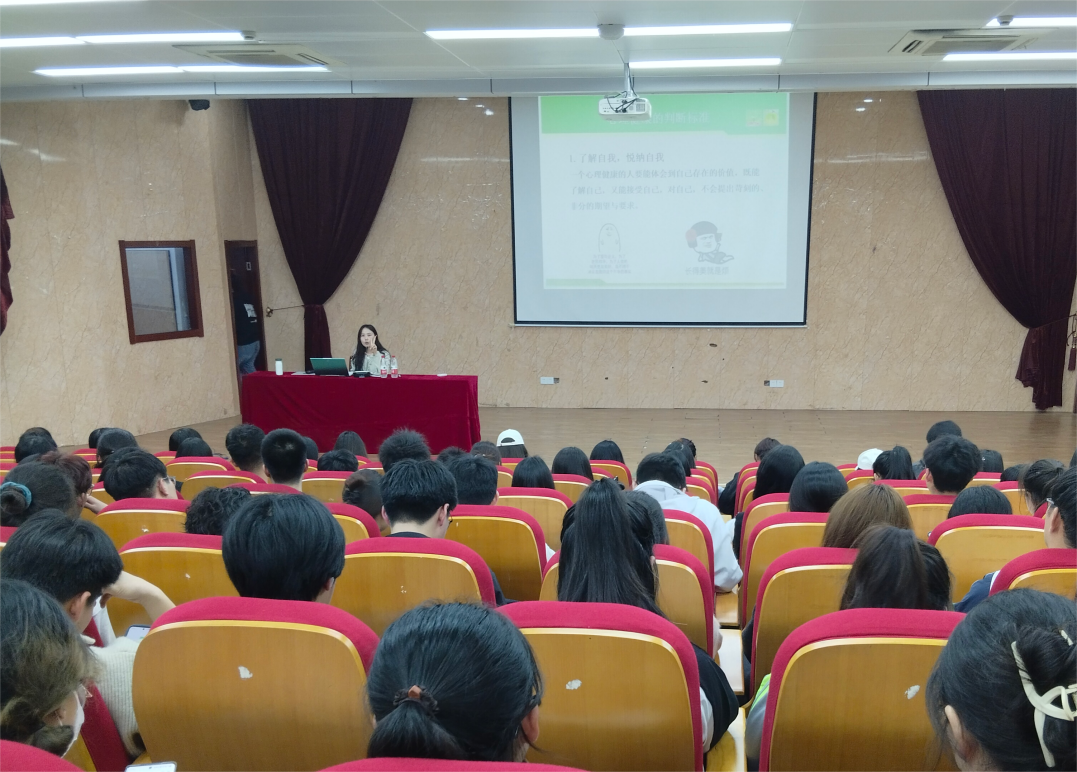 本场讲座的主题为《大学生异常心理的识别》,杨老师用简单切实的例子和生动活泼的语言讲述了大学生心理健康的重要性及常见的大学生异常心理问题。讲座最后,杨老师引导同学们在遇到心理健康问题时积极应对,增强求助意识;同时也要积极帮助身边有心理健康问题的同学,设身处地地为他们着想,帮助他们走出阴霾。活动现场氛围热烈,同学们认真听讲,积极回应。