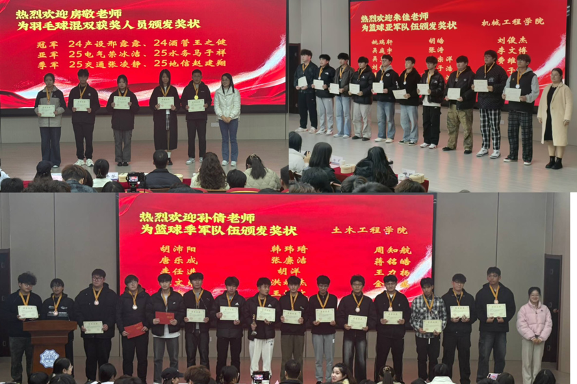 篮球项目:经过多轮鏖战,管理学院凭借出色的整体实力和默契配合,勇夺篮球项目冠军,机械工程学院和土木工程学院分别获得亚军、季军。此外,管理学院24级造价专业的余洋依靠赛场中的出色发挥,斩获篮球项目‘最有价值球员(MVP)’荣誉,其攻防两端的稳定表现成为球队制胜的关键之一。