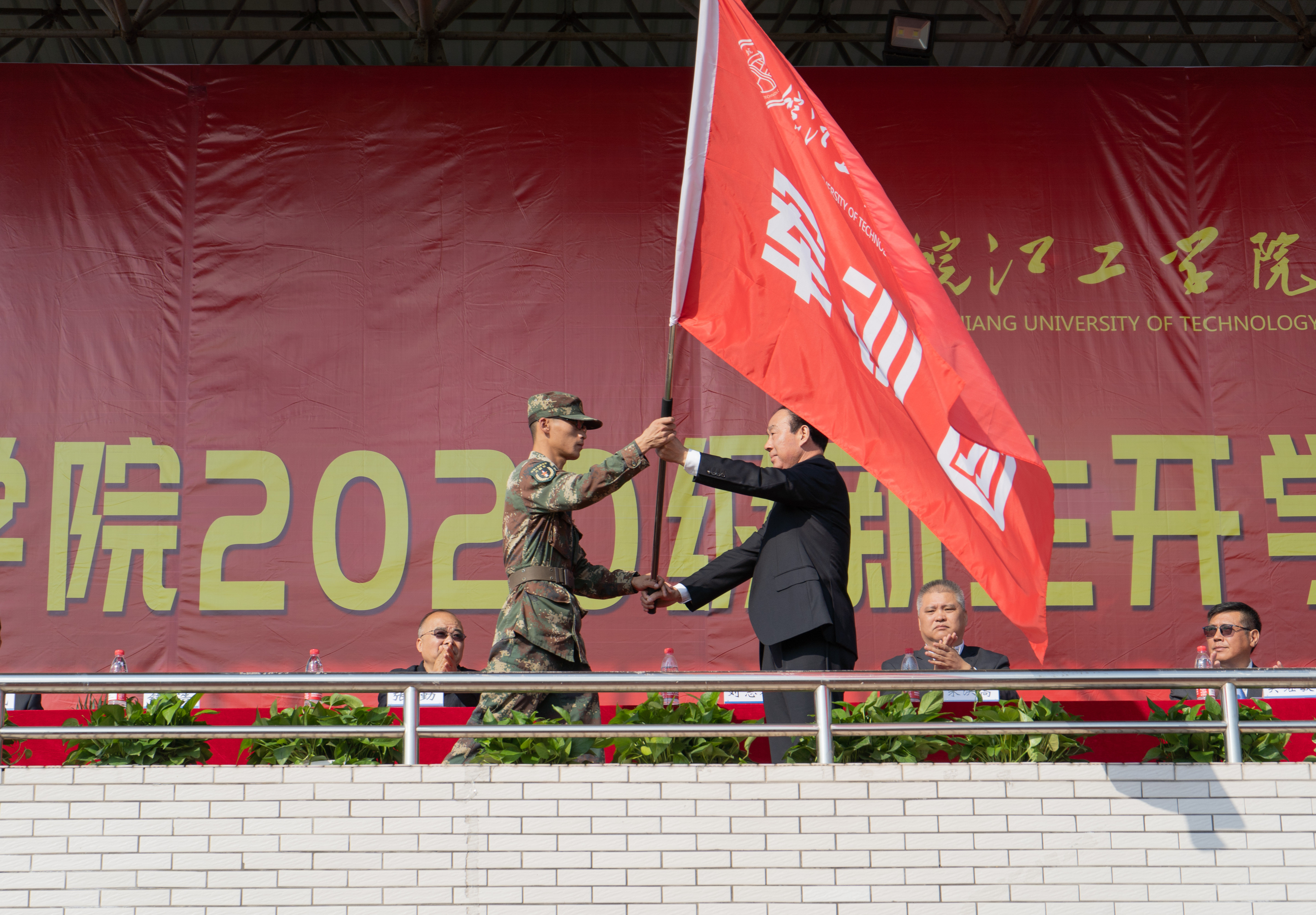 宣读完军训团成员名单后,刘志祥书记向军训部队授旗。