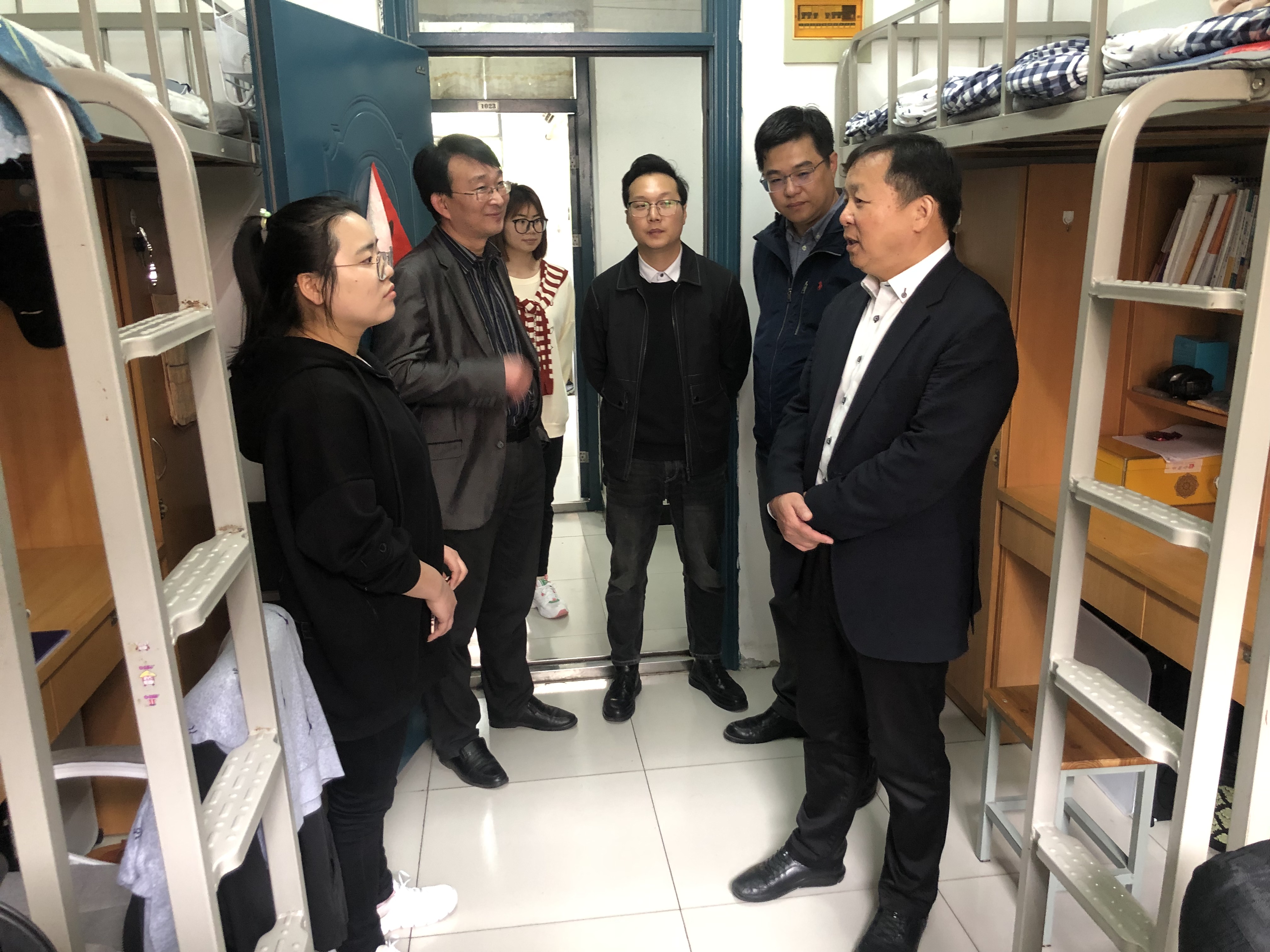 4月23日上午,副校长侯进元,学工部副部长江春明一行来到郑蒲港校区,深入学生宿舍进行调研检查。校区管委会主任助理陈波,校区学工办副主任周其松及全体辅导员陪同调研。