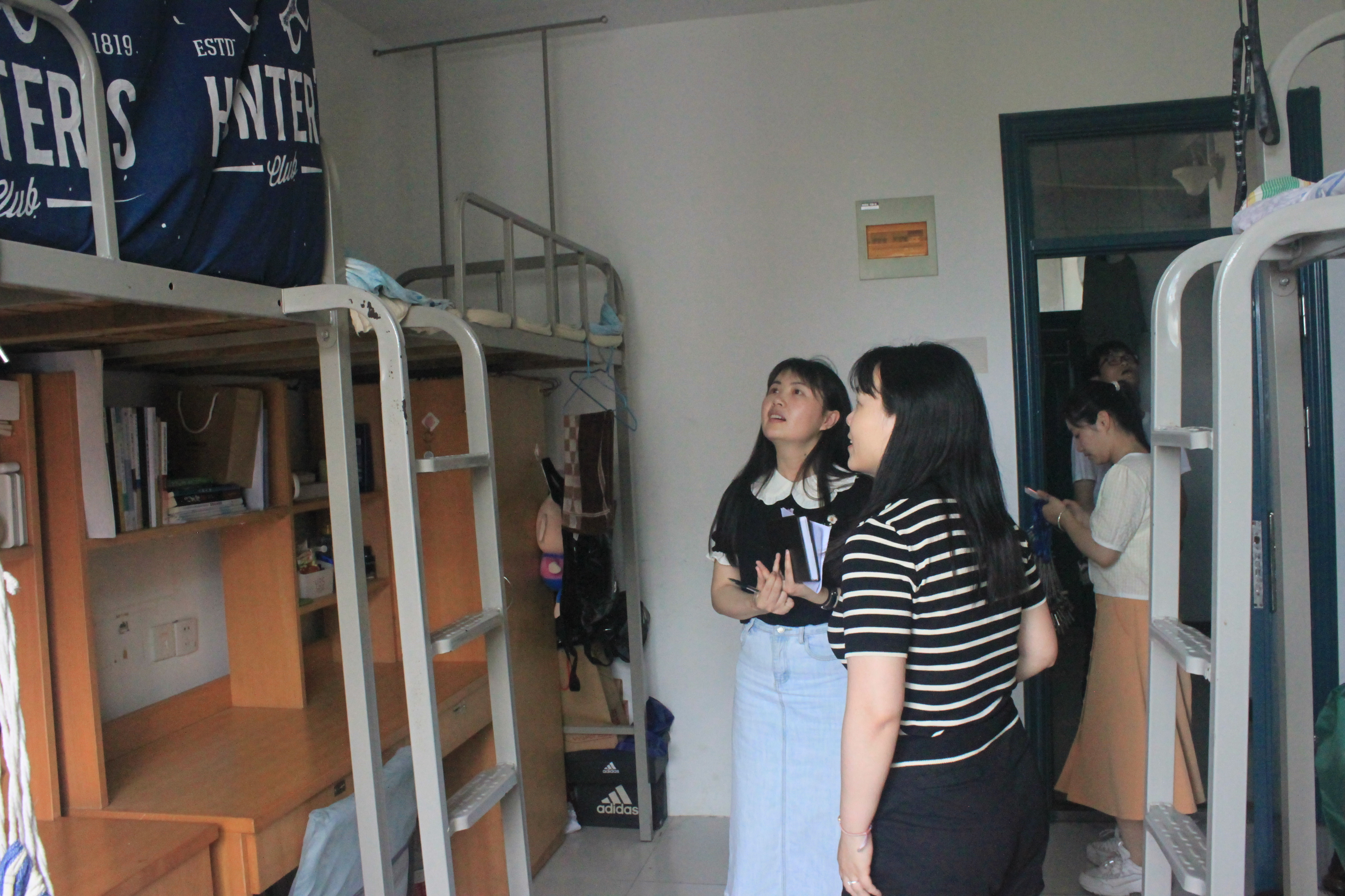 在调研检查工作中,候进元带队分别对校区劳育共建区、学生宿舍、食堂、教学楼、行政楼进行了认真查看。其中劳育公建区和学生宿舍是本次工作的重点检查区域。各学院学工办主任在辅导员老师的陪同下分别对校区1-9号宿舍楼内的环境卫生与安全隐患展开了全面检查。本次检查覆盖了校区全体学生宿舍,发现校区学生宿舍整体情况良好,宿舍内干净整洁,物品摆放有序,但也有极少数宿舍仍有进一步改进和提升空间,辅导员老师认真记录了相关的不足之处,后期将及时引导学生整改。